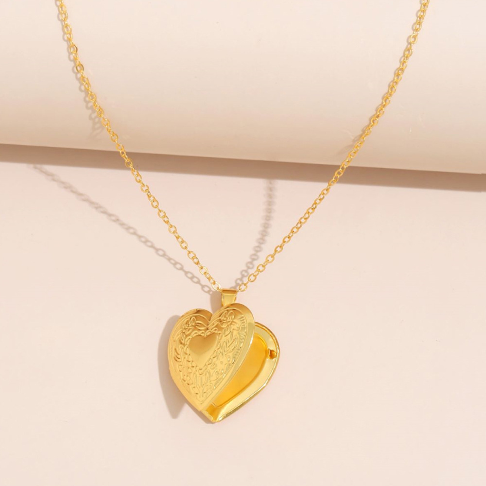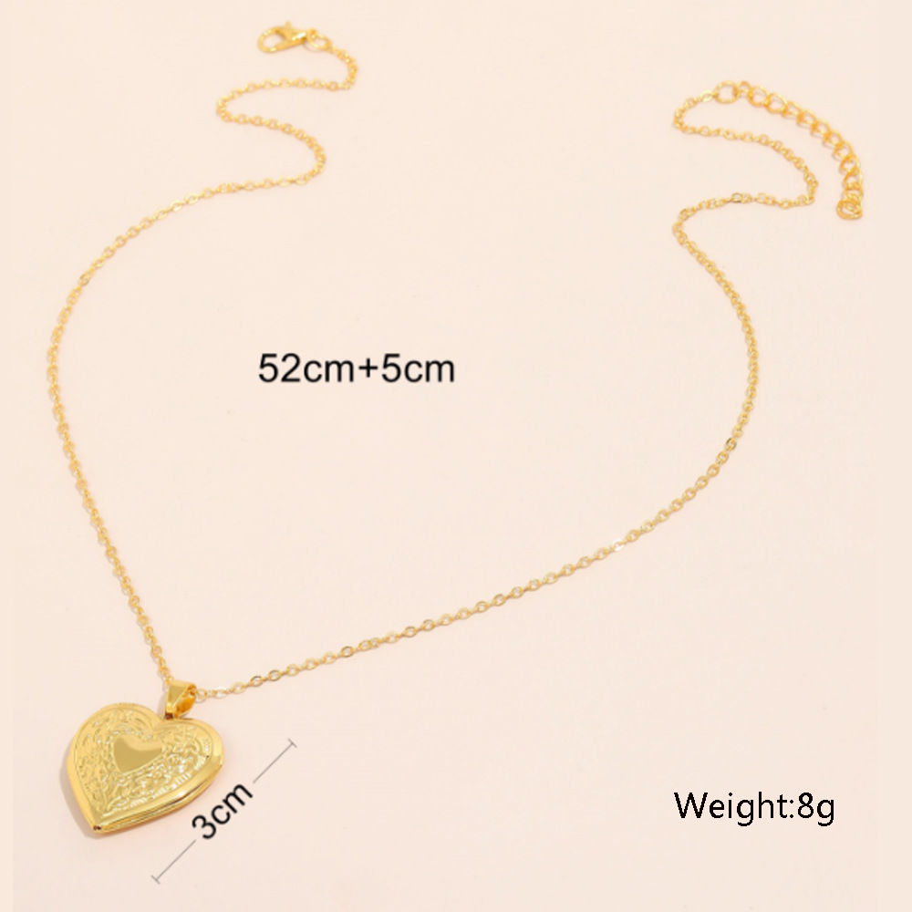 Stylish Heart-Shaped Metal Pendant Necklace Jewelry Gift for Mother's Day DIY Photo Frame