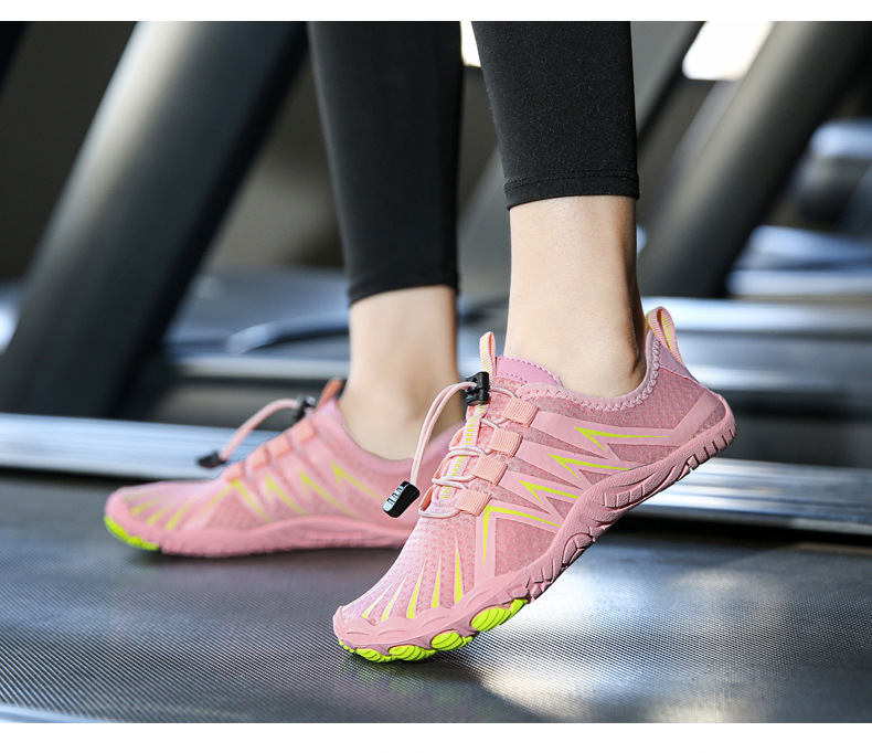 This direct new casual swimming shoes five finger fitness outdoor couple beach snorkeling shoes is perfect for all ages and genders. It is breathable, lightweight and comfortable. It is suitable for any outdoor activities such as running, hiking, camping, swimming, and snorkeling. The material is air layer and EVA midsole, and the sole is made of rubber. It is also anti-skid and wear-resistant. It is perfect for any outdoor activities and it is a must-have item for summer.