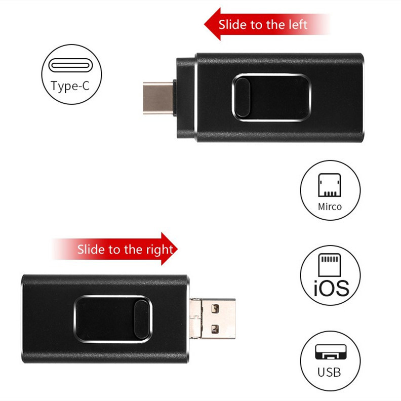 4 in 1 USB Flash Drive for Phone, Lightning, Huawei, Android, OTG, 128G
