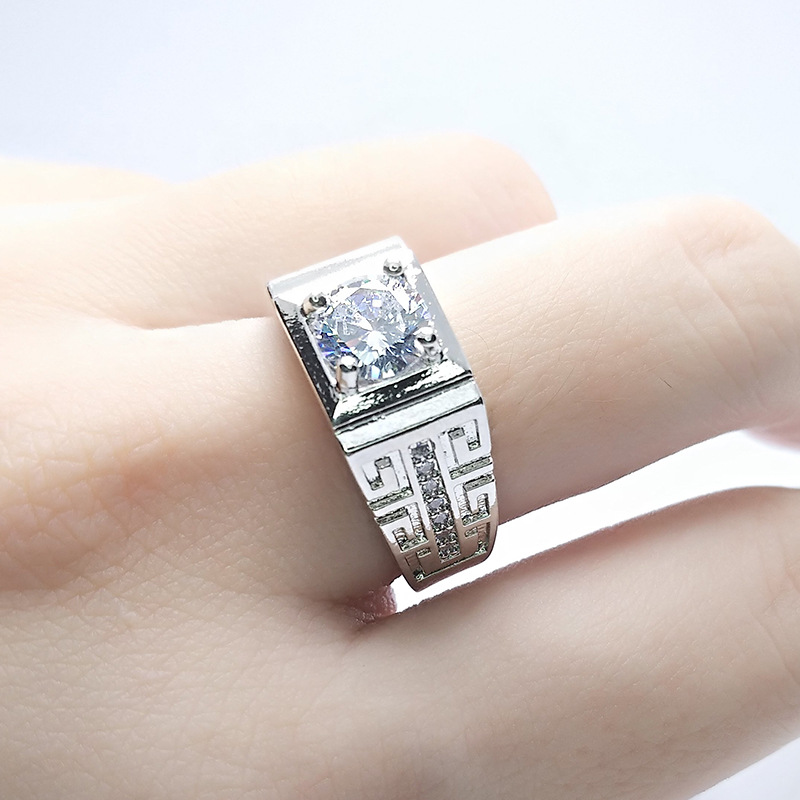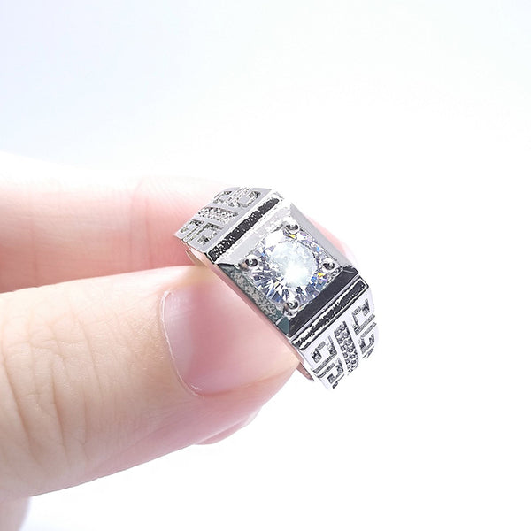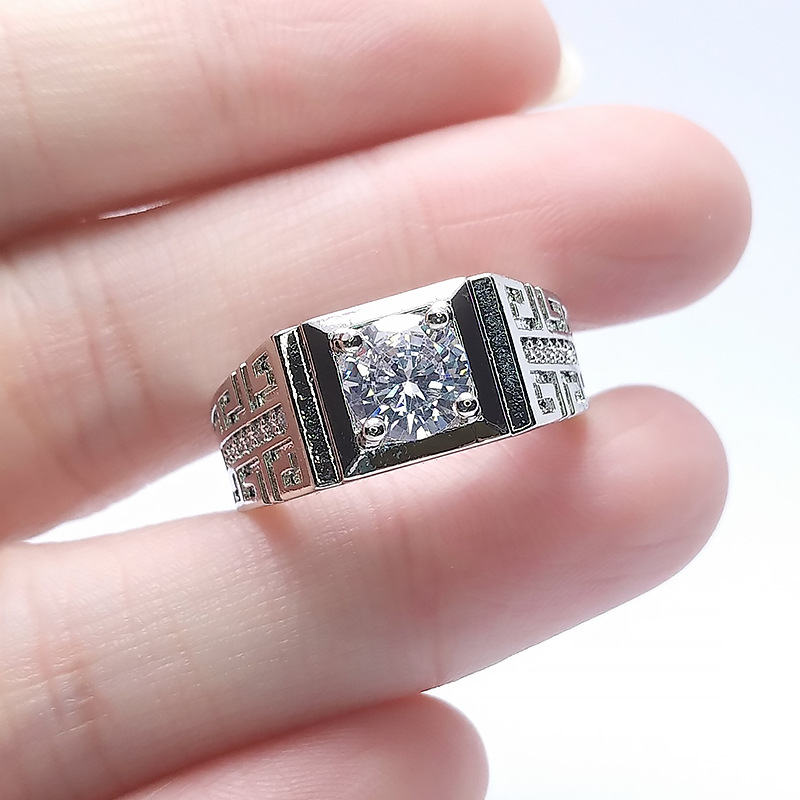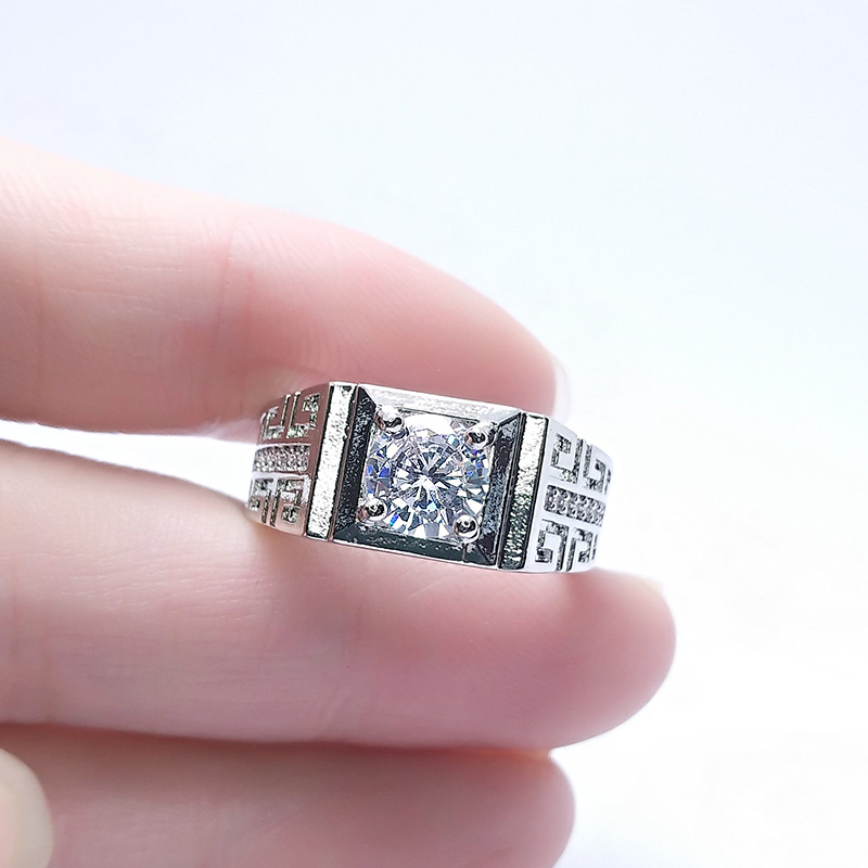 1 Carat Man's Cool Live Ring with Adjustable Moissanite Opening and Line Elements