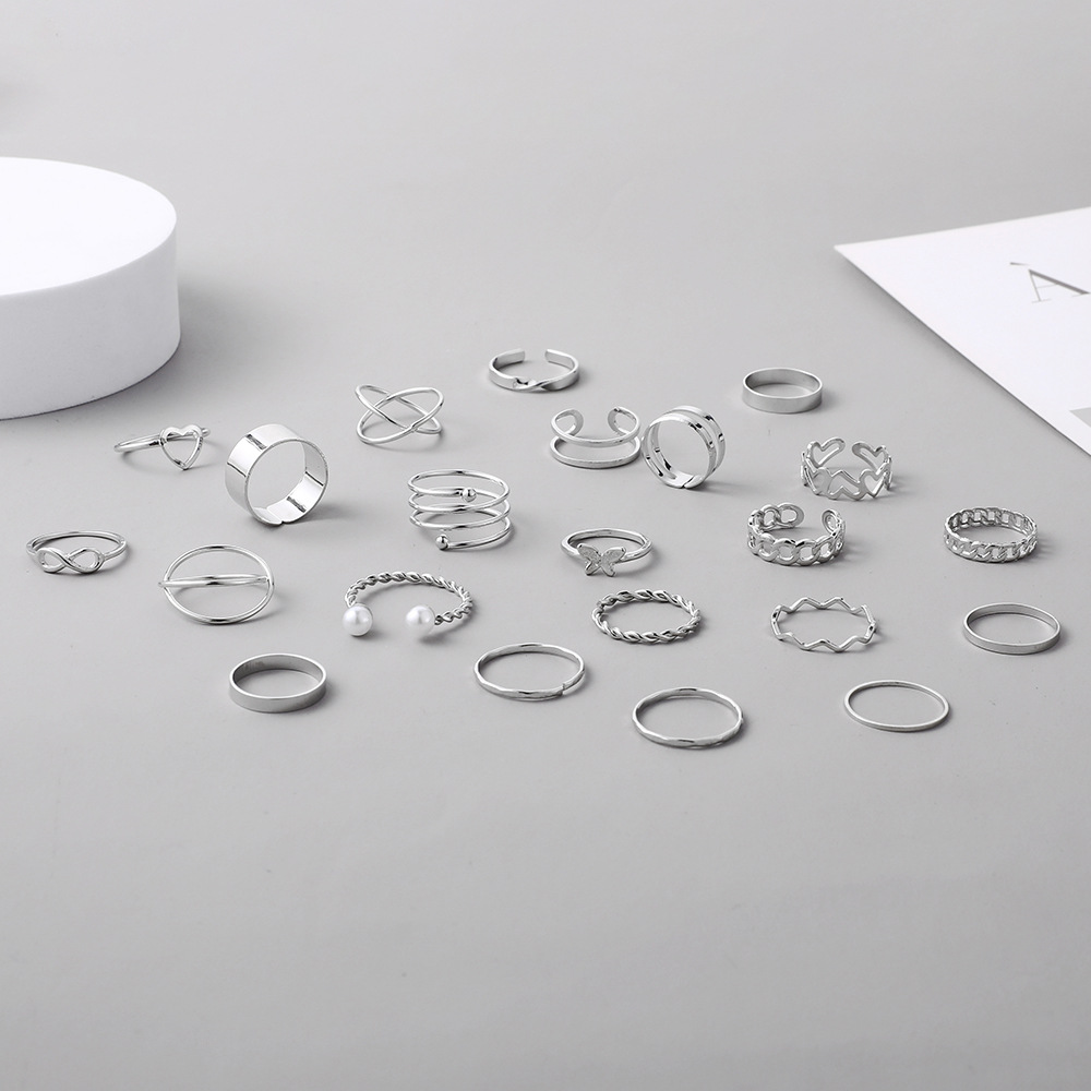 22-Piece Heart-Shaped Open-Jointed Ring Set with European and American Style for Women