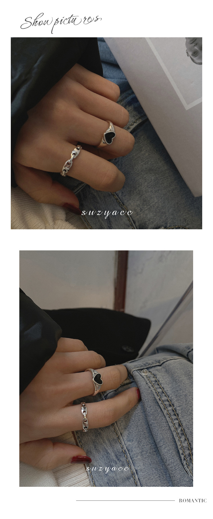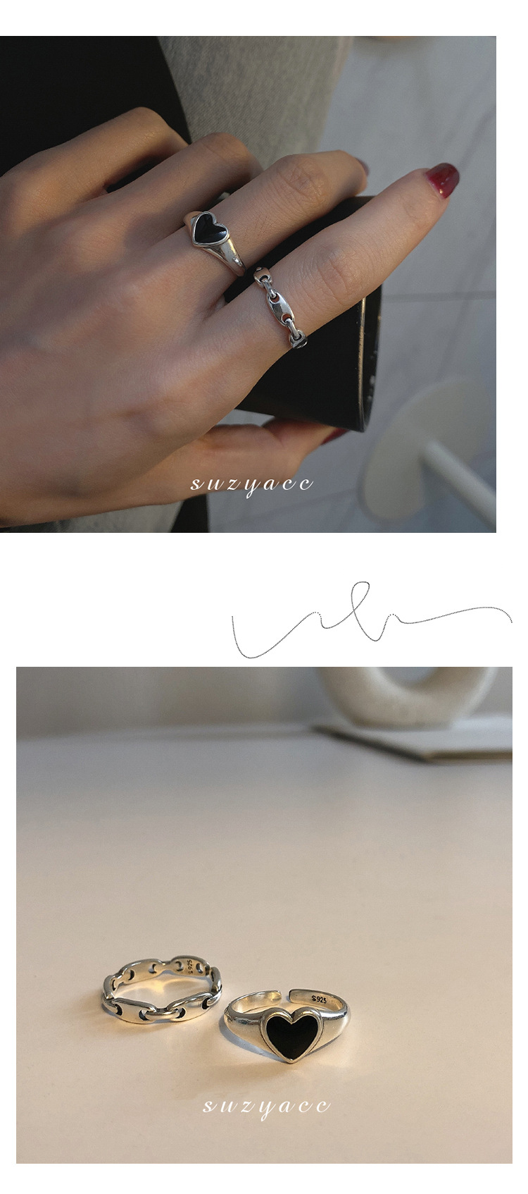 925 Silver Love Heart Ring with Korean Style/Korean Wind, Heart Shape, Suitable for Gift, Packaged, No Customization, Jinhua Origin, Women's Style, High Quality