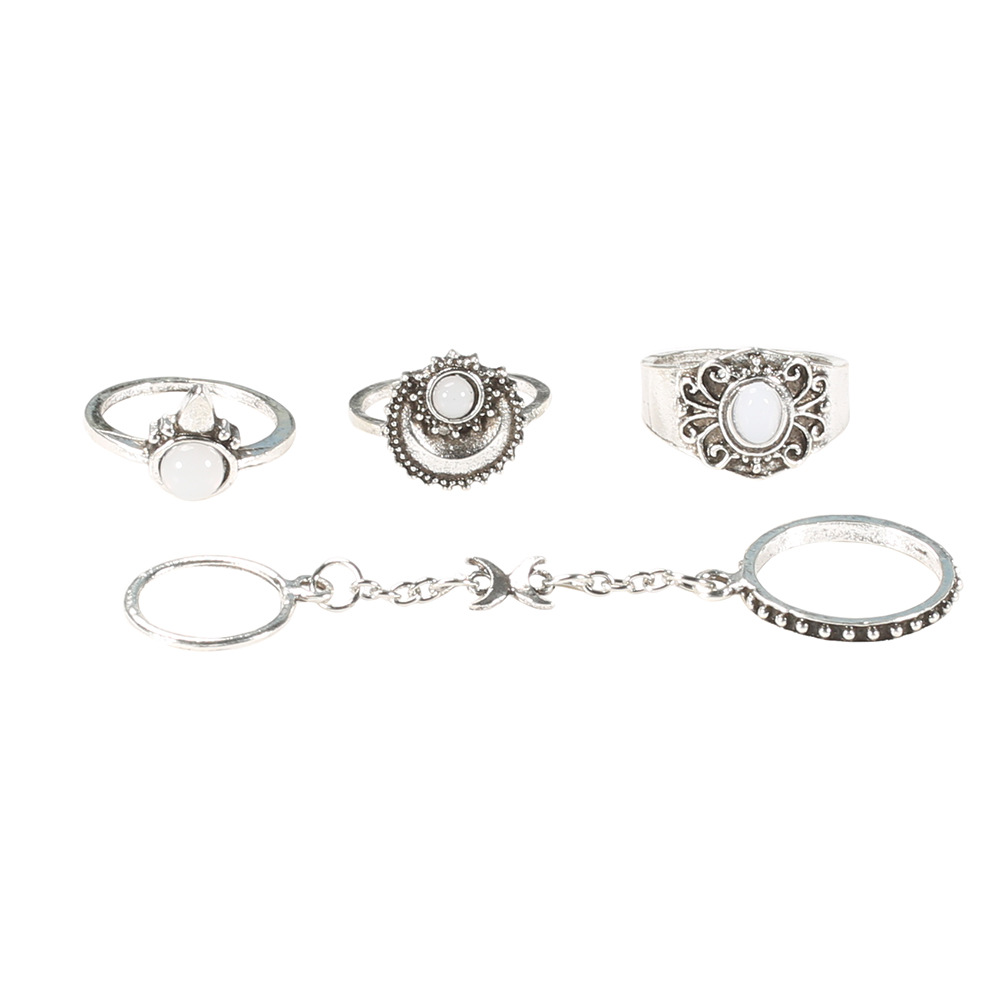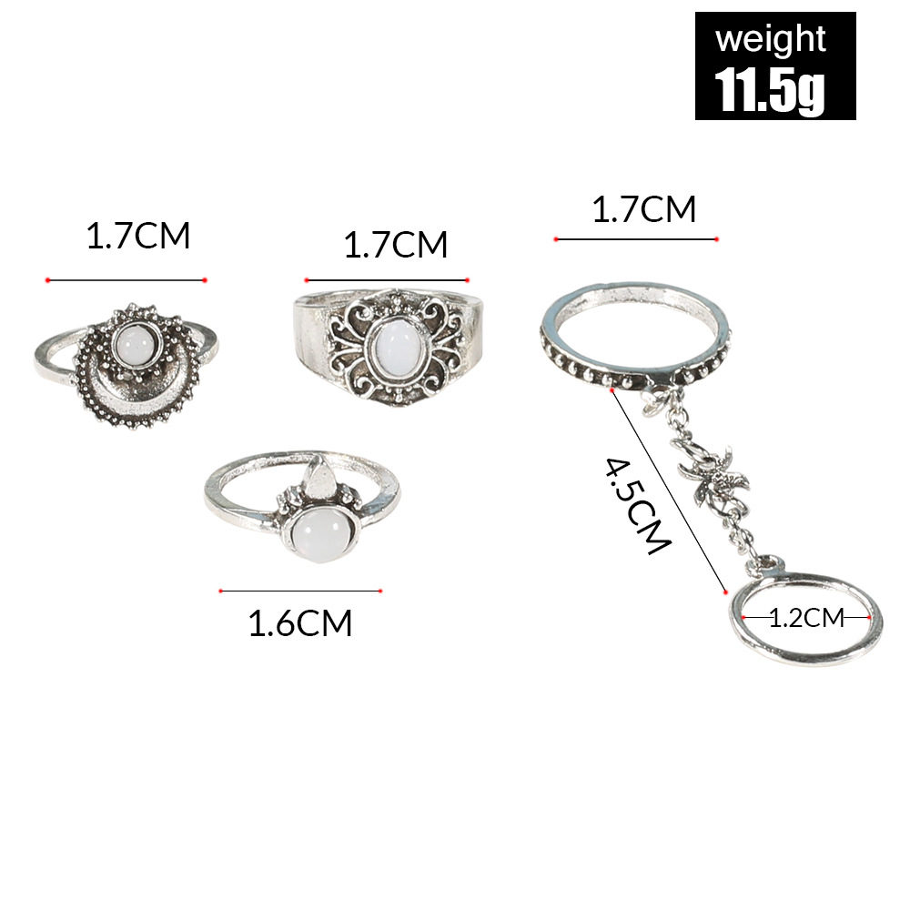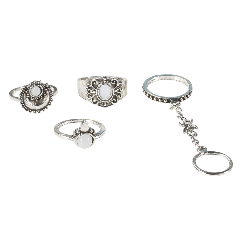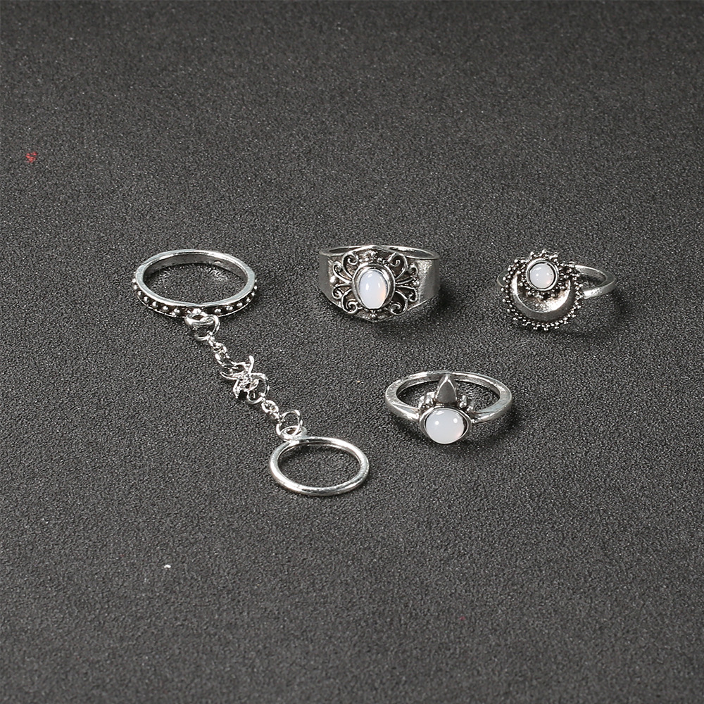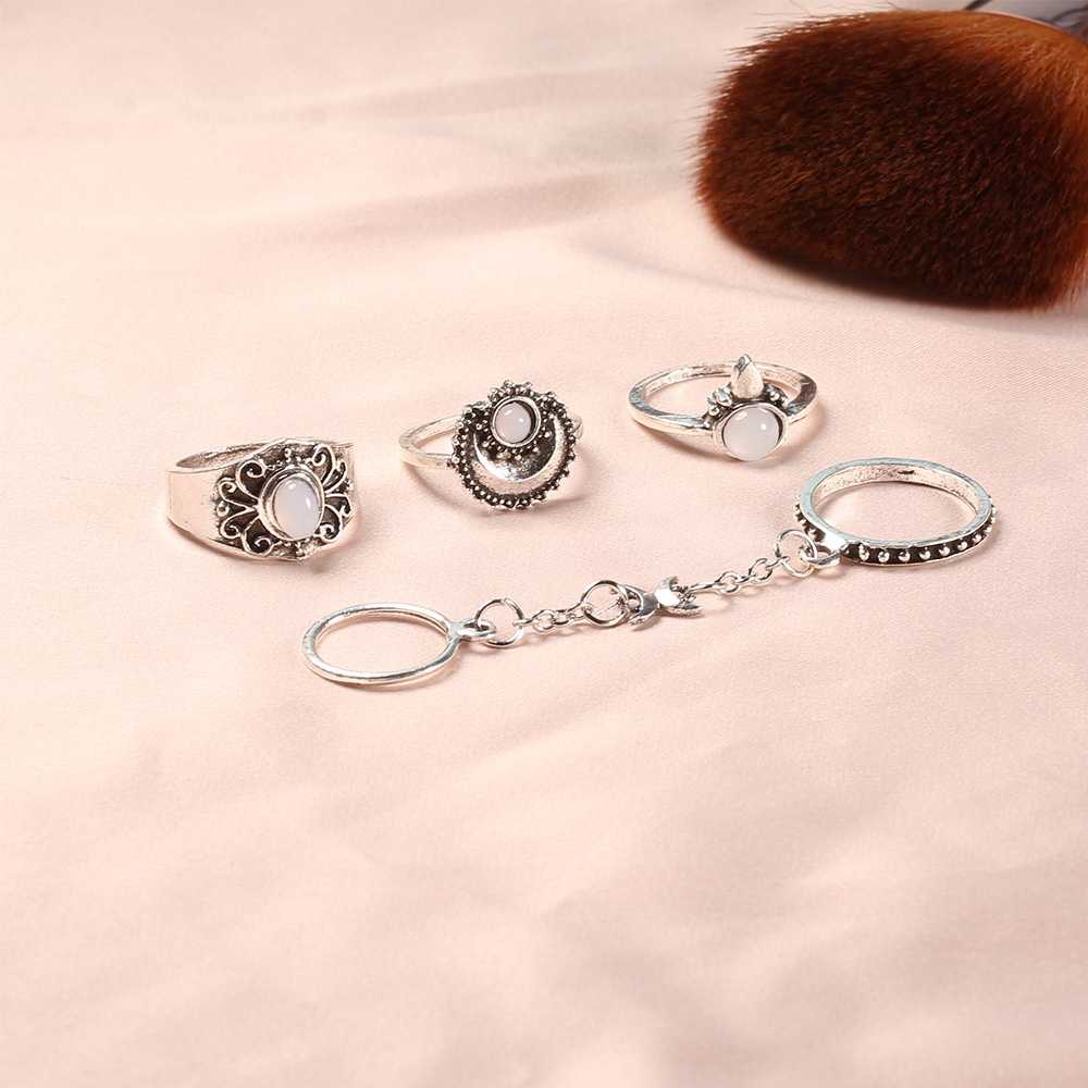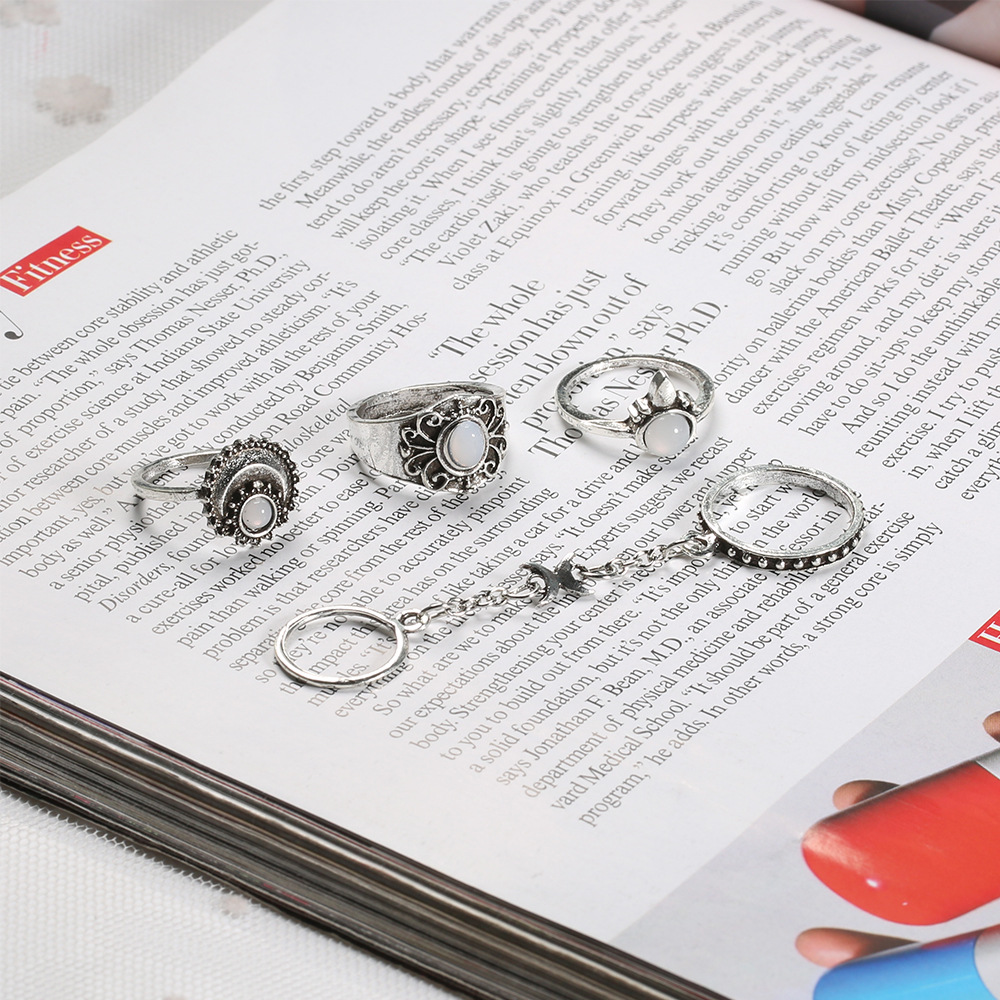 Vintage 5-Piece Gemstone Rings with Engraved Floral Patterns & Diamonds