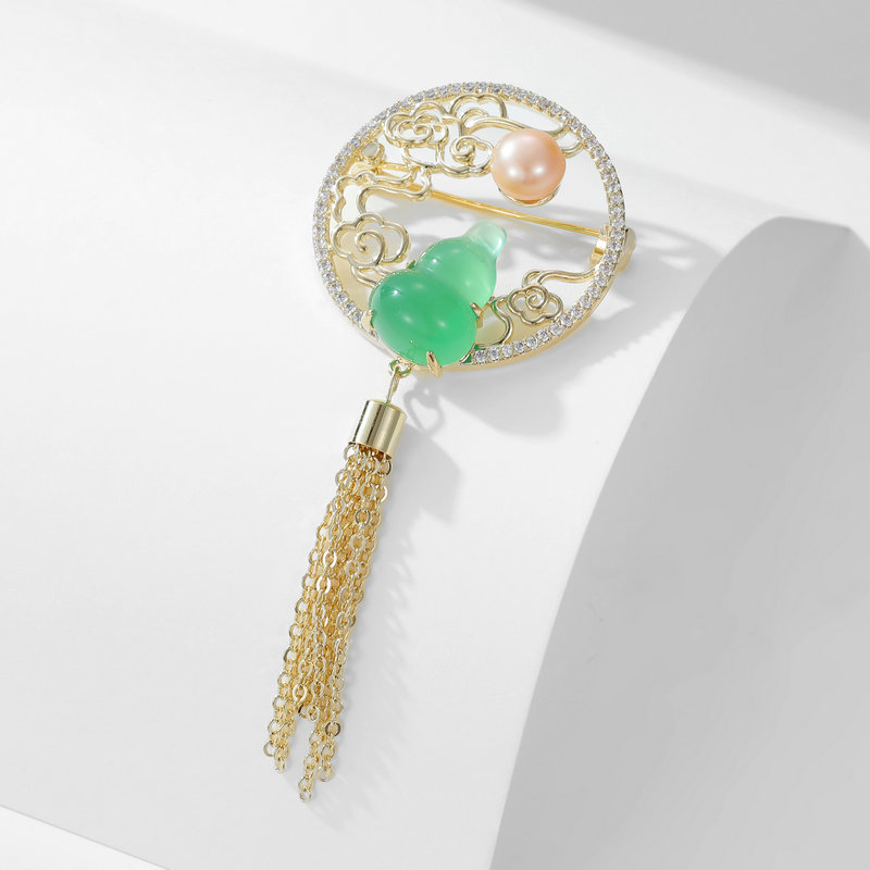 Elegant Chinese Style Natural Freshwater Pearl Brooch with Traditional Chinese Elements
