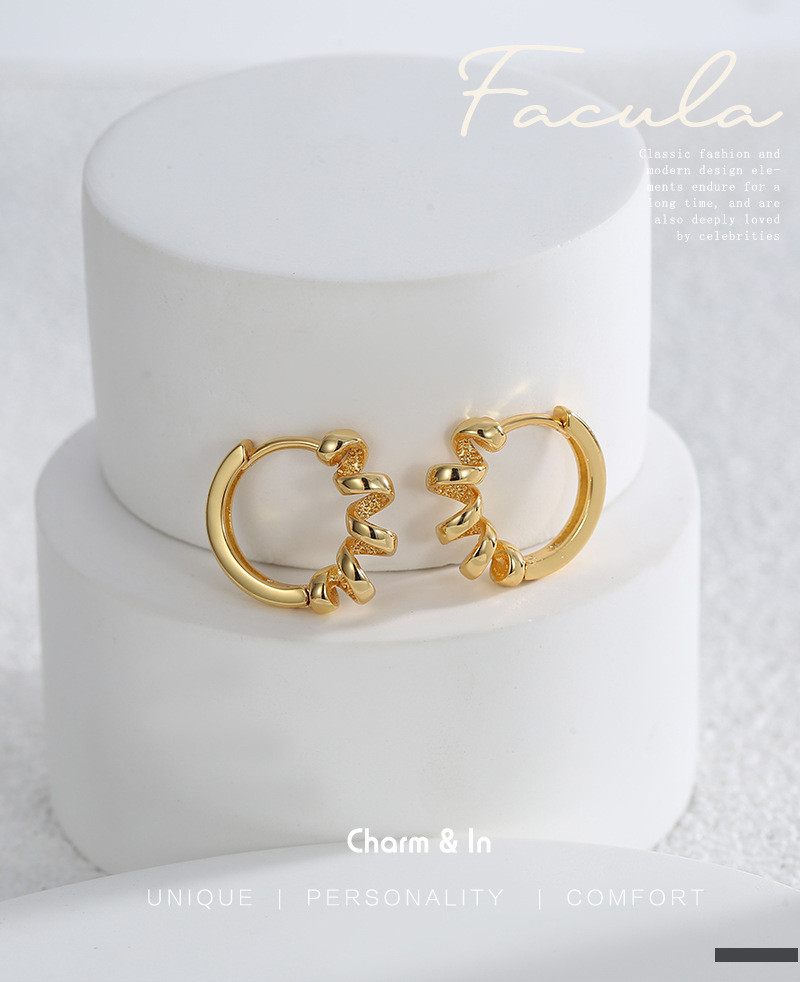 Unique French Retro Phone Wire Earrings with 18K Gold for Women