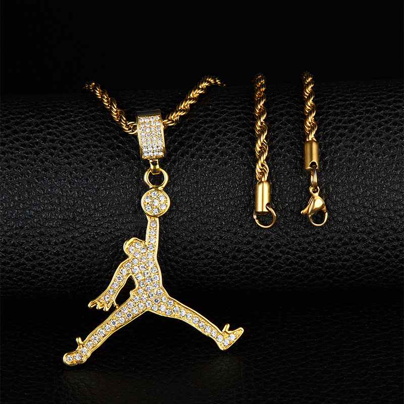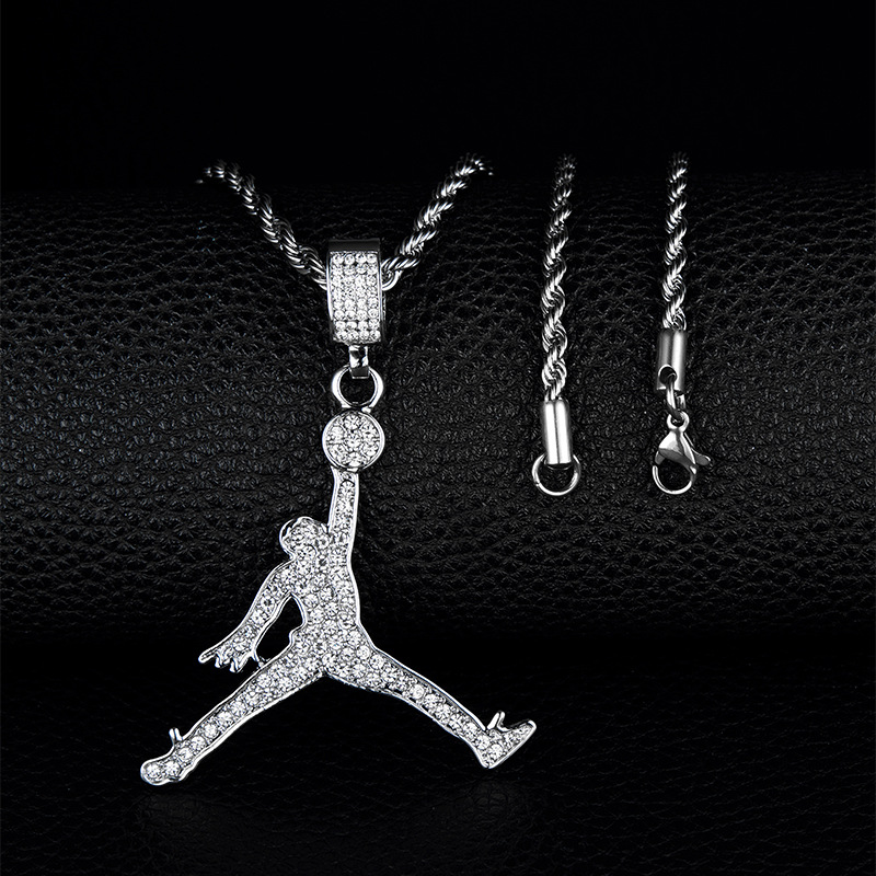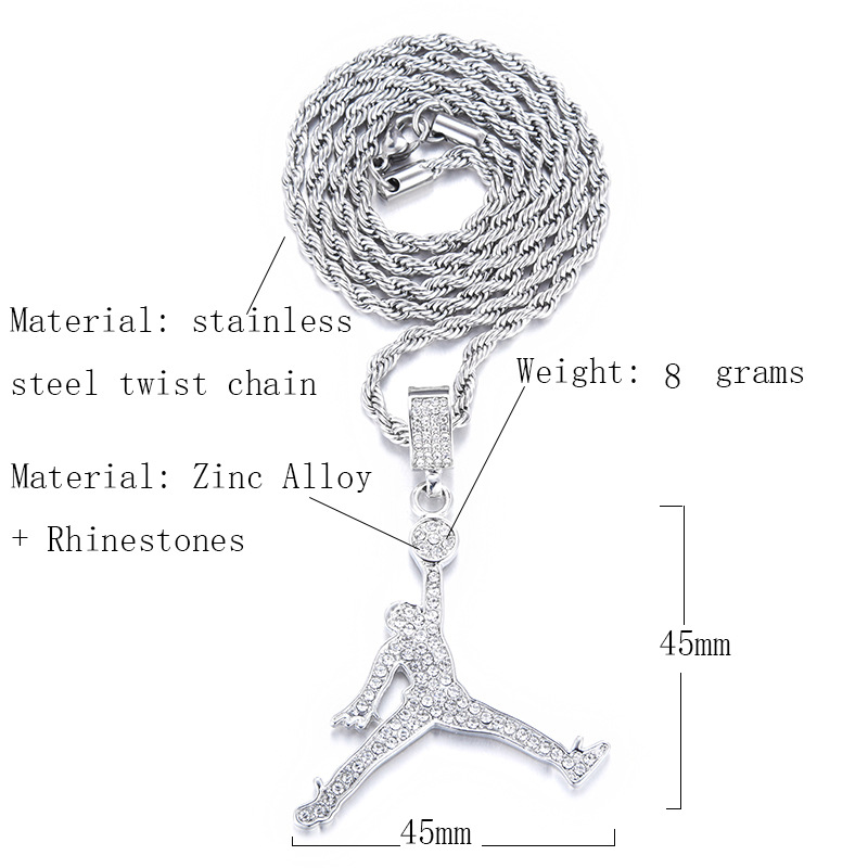 Hip-Hop Basketball Fly Man Necklace, Personalized Style Pendant Jewelry for Men and Women