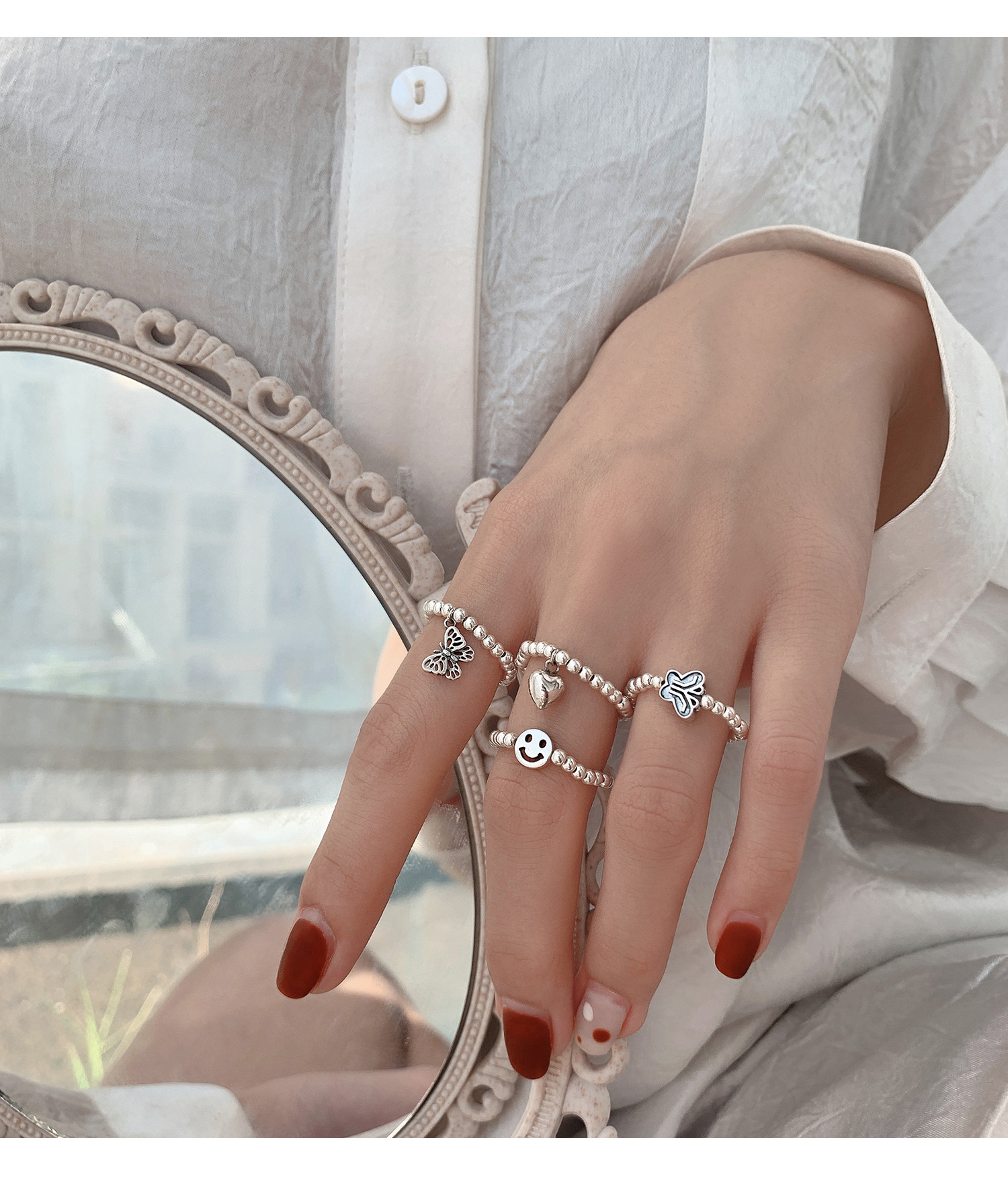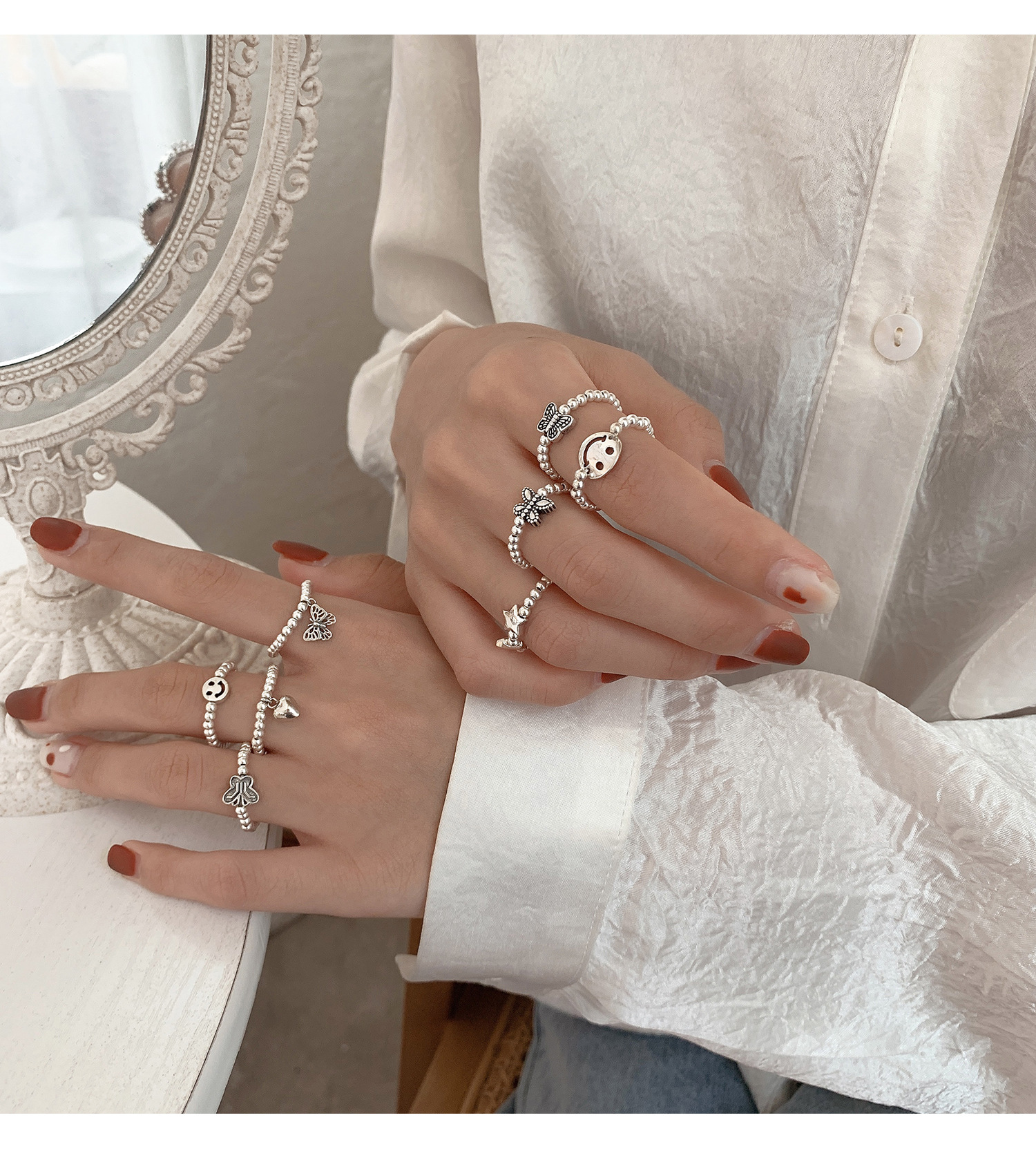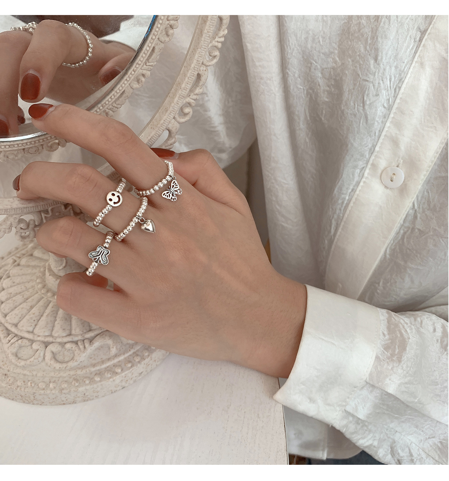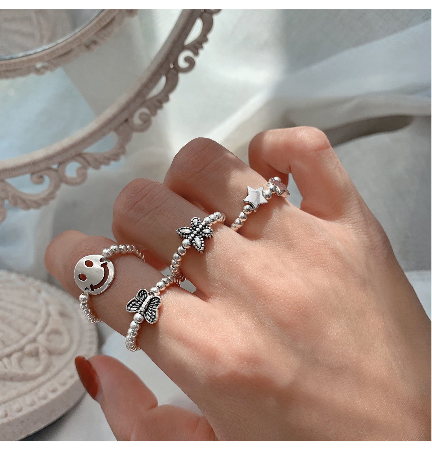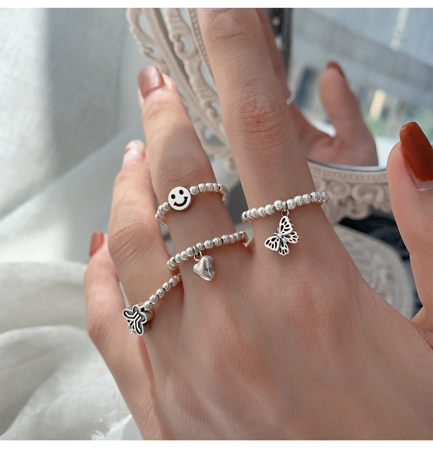 925 Sterling Silver Butterfly Pull Chain Ring for Women with Korean Style, Korean Wind, Alloy Material, Female Style, Animal/Fantasy Model, Independent Package, Suitable for Travel Souvenir, Employee Benefits, Jinhua Origin