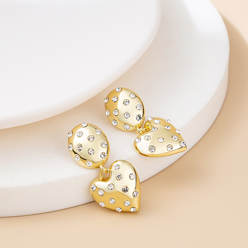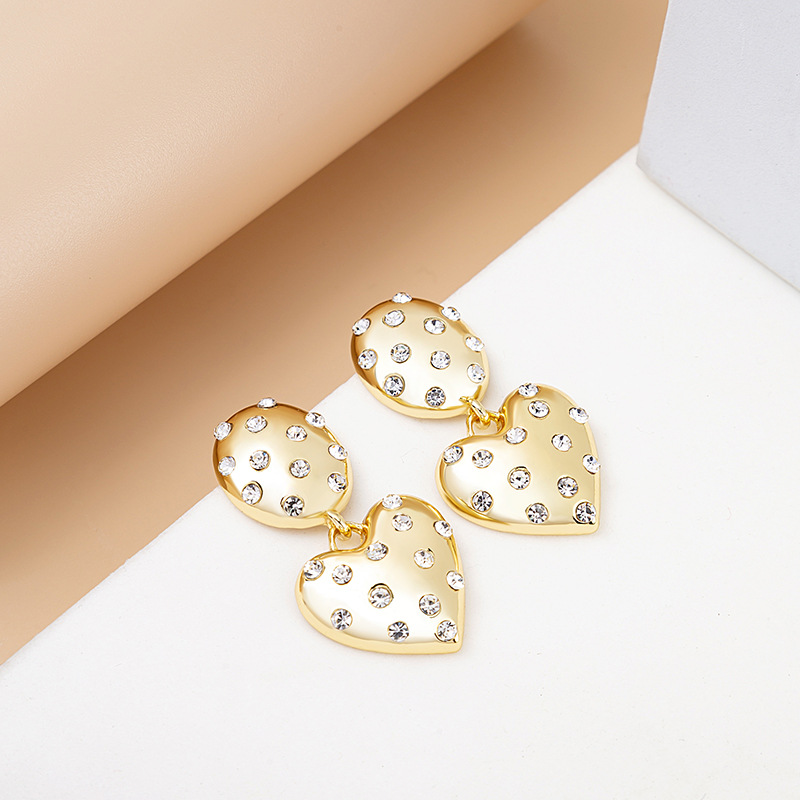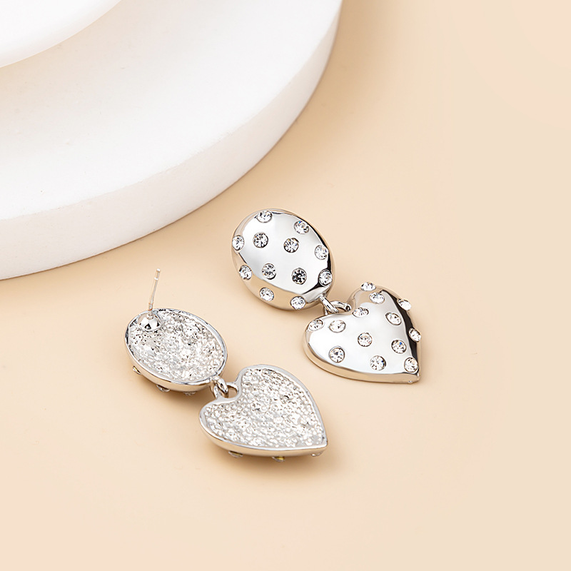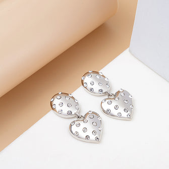 Lovely Silver Heart-Shaped Earrings with Rhinestones for a Chic Look
