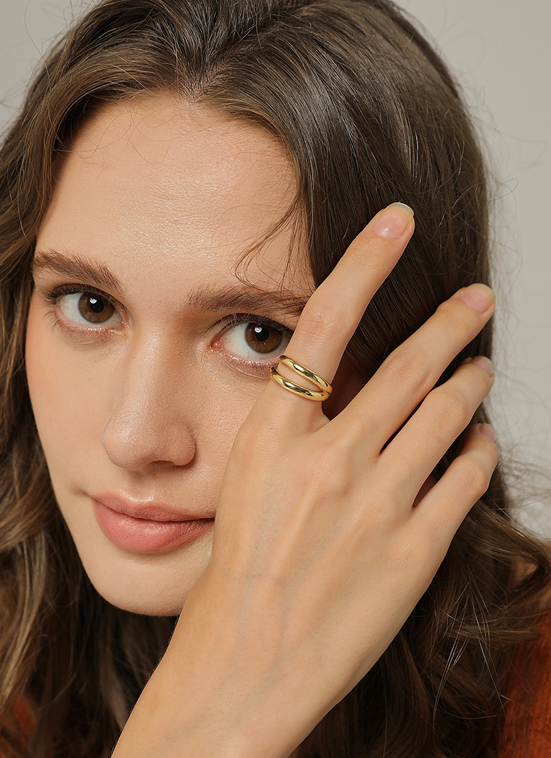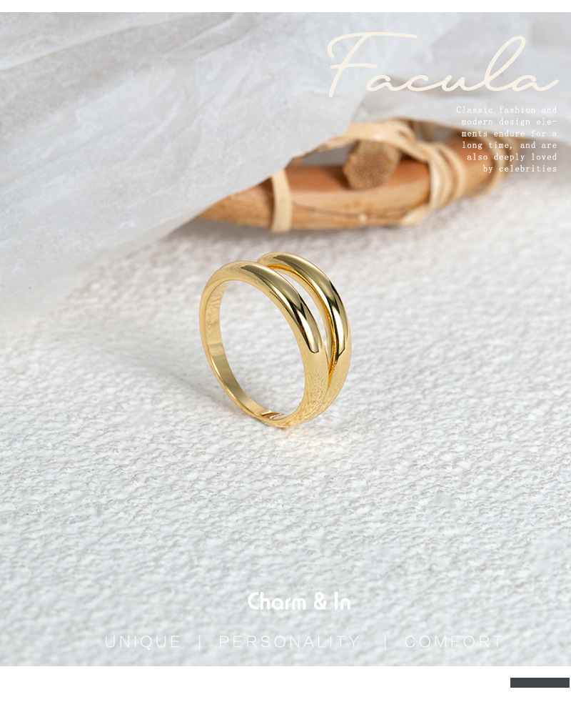 Minimalistic Gold Double Layer Ring with European and American Style and Unplated Material