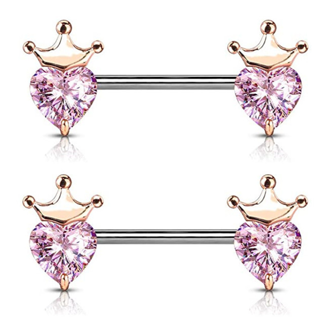 14K Gold Crown-Shaped Rhodium Plated Body Piercing Jewelry with Red Stone