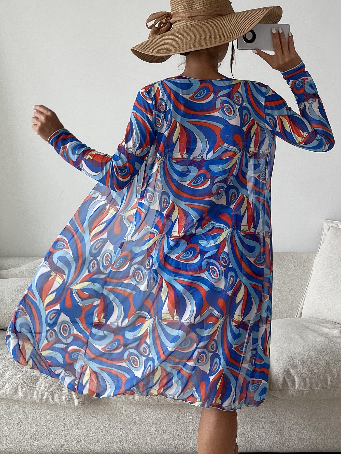 New Three-piece Swimsuit Women Printed Multi-color Long Sleeve Long Beach Cover-up Separates Drawstring Swimwear