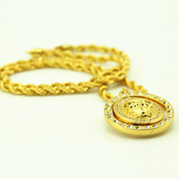 Fashion Alloy Pearl Necklace with Lock Bone Pendant and Chain Jewelry for Men and Women